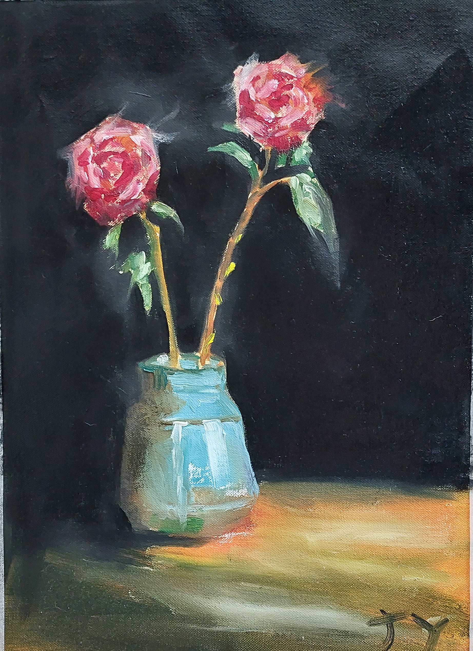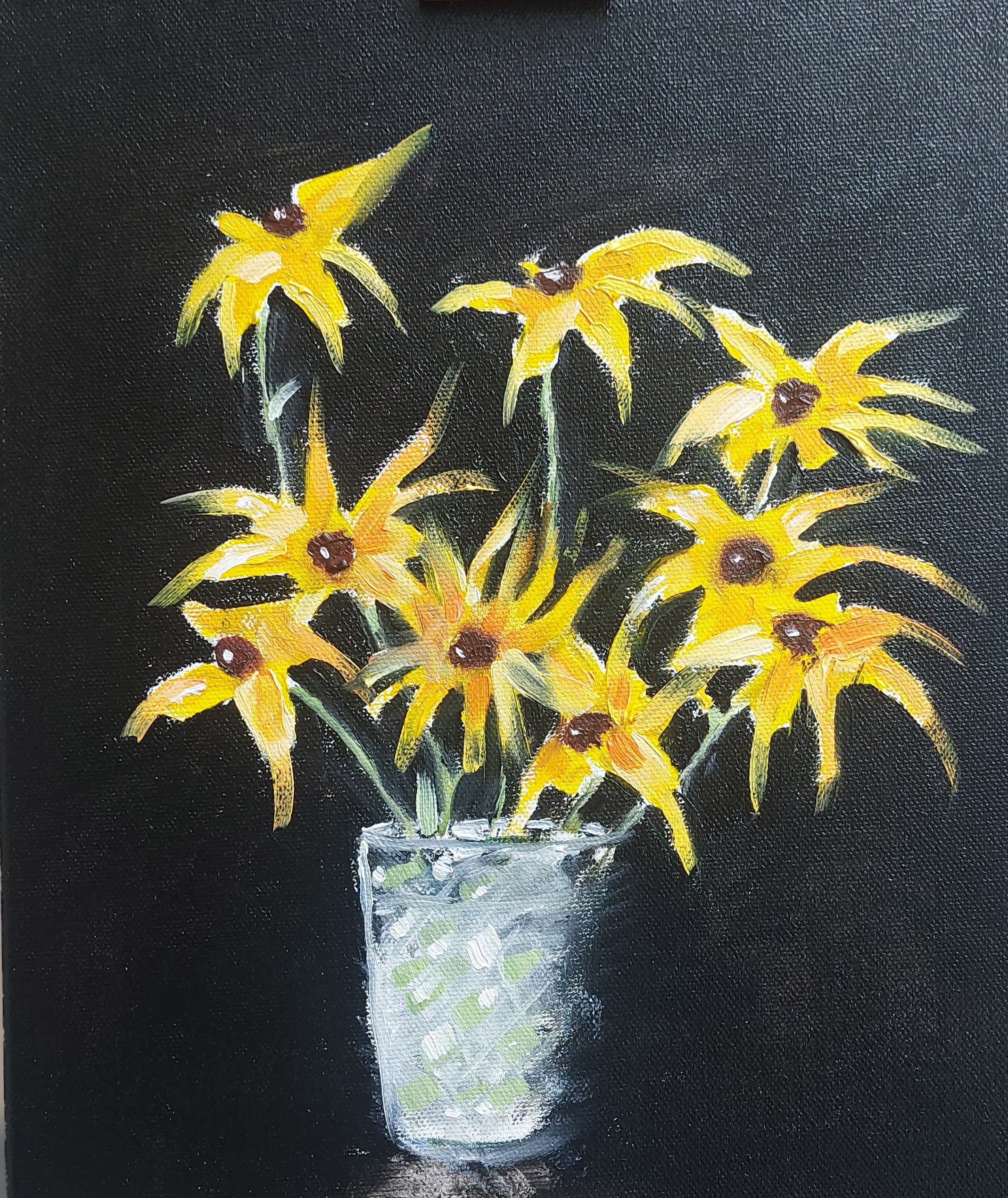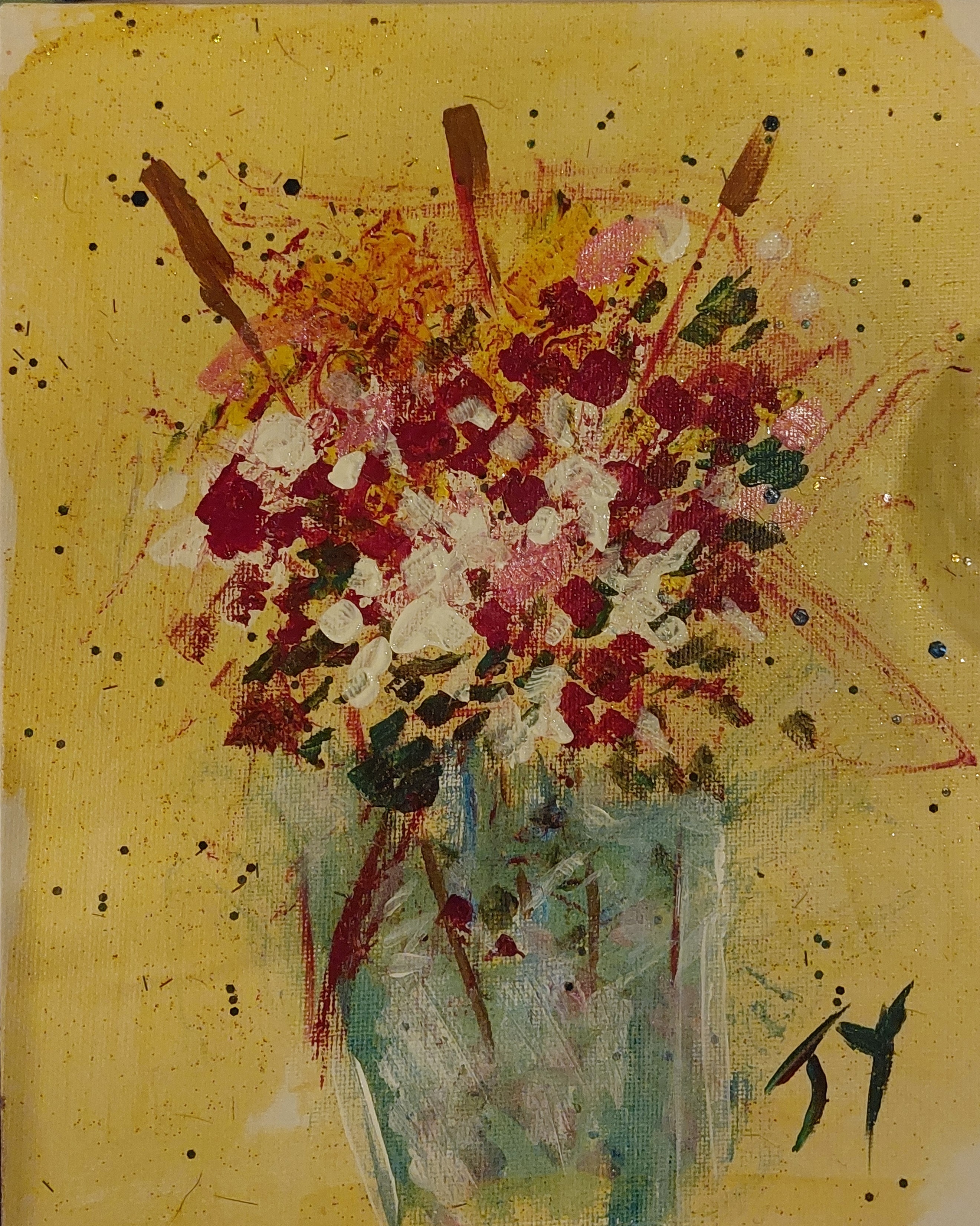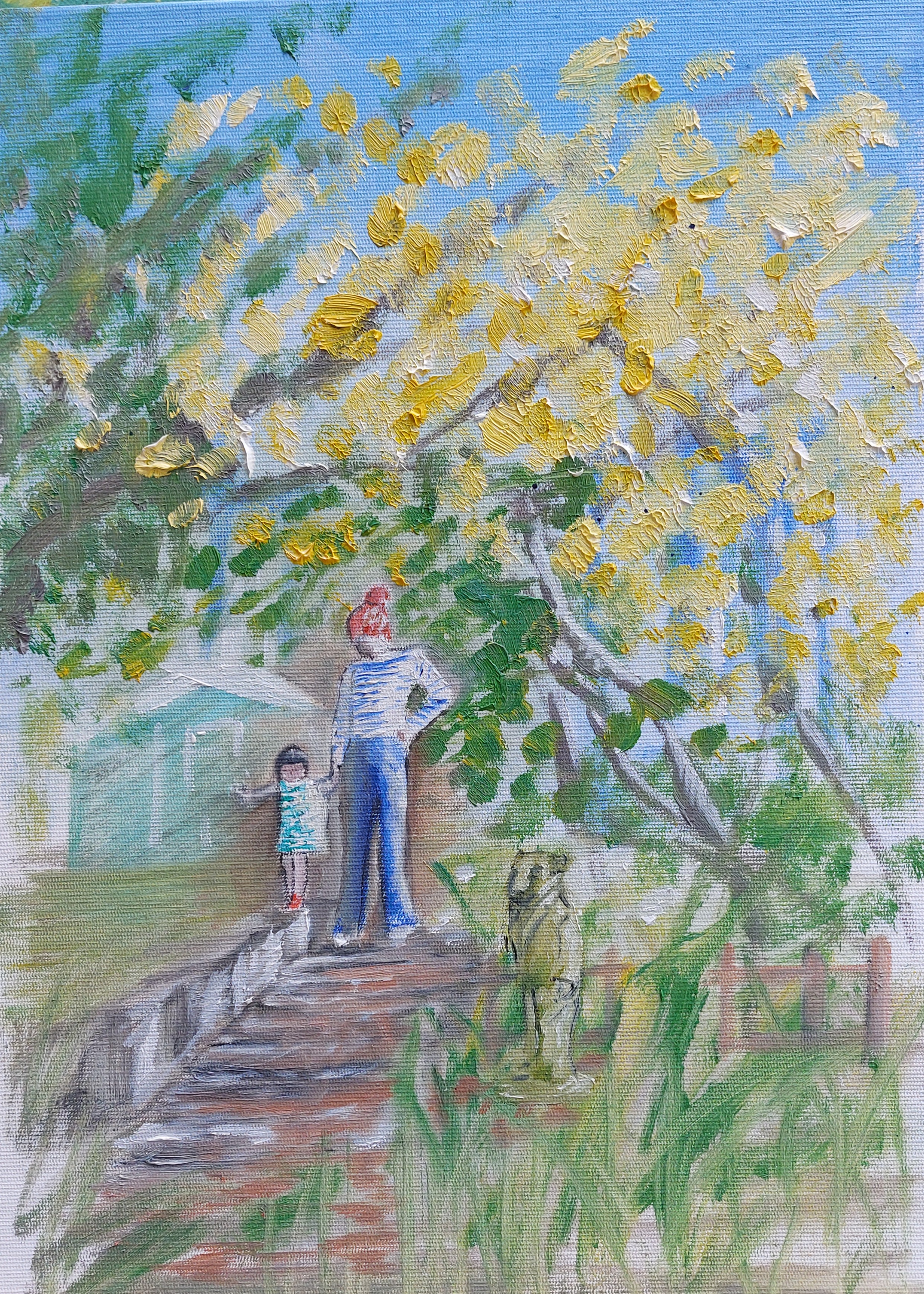 Oils / Mixed Media White Flowers on Blue, Unframed, £200 Cherry Trees, Battersea Park - Water Colour and Guache, Framed - SOLD Daffodils, oils on canvas, unframed £150 Aliums, oils on canvas, unframed - SOLD Portrait - oil on canvass unframed - NOT FOR SALE Racing at Cagnes-sur-Mer - Oil on canvas framed - £600 Boats in Nice - Oil on Paper framed - SOLD